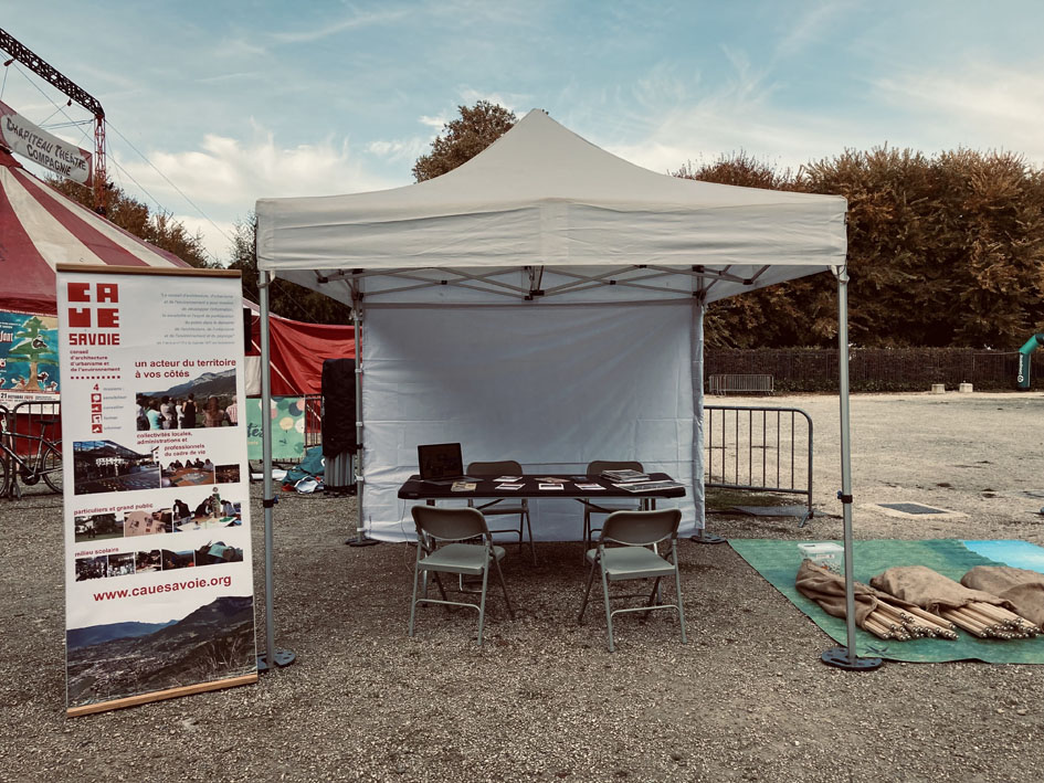 Ce stand CAUE, installé au Parc de Buisson Rond à Chambéry, lançait également la 1ère journée du festival des Forestivités 2025 en Savoie.